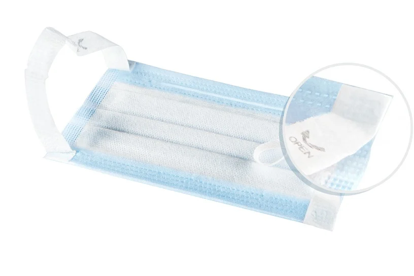 Mugavate venivatega kõrva taha kinnituvate paeltega 3-kihiline kirurgiline mask. Maskid on valmistatud hüpoallergeensest materjalist ja kasutajale ohutud. Ninaosas on painduv traat, et kohandada maski kandja näo järgi.