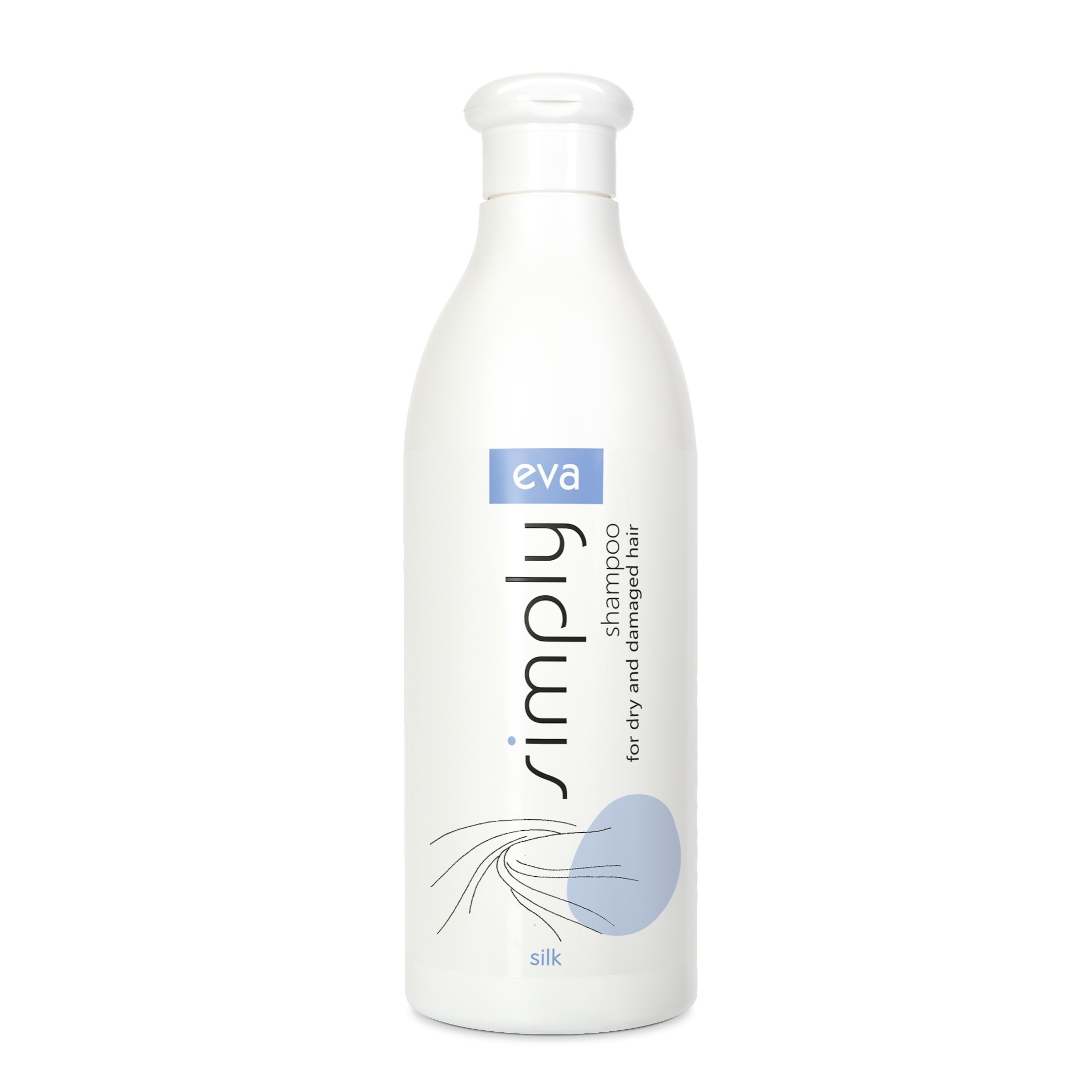 Eva Simply šampoon kuivadele ja kahjustatud juustele. Siidikompleks moodustab juustele kaitsekihi, mis silub, taastab ja tugevdab juukseid. Šampoon sobib hästi ka katkiste juukseotste hooldamiseks. Tänu intensiivsele niisutusele muutub juuste struktuur vähem kahjustatuks. Tulemuseks on pehmed ja siidise läikega juuksed.