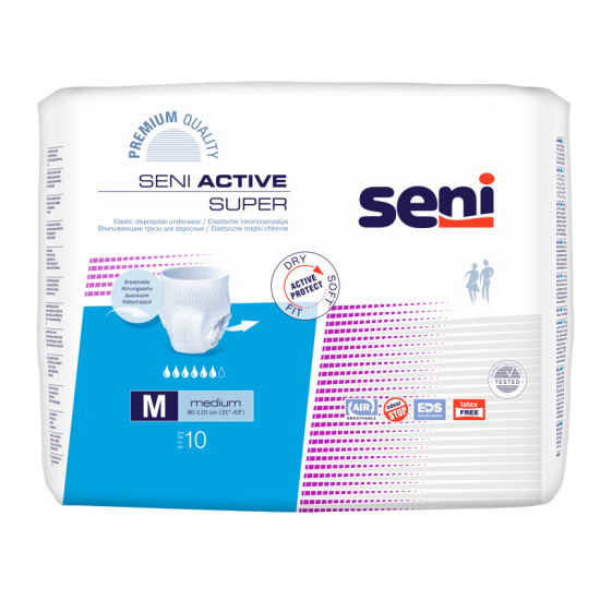Seni Active imavad püksid on mõeldud aktiivsetele või füsioteraapias käivatele inimestele. Püksid on väga kvaliteetsed- pehmed, jalas mugavad, imehea pinnaviimistlusega. Seni Active püksid on õhku läbilaskvad, lõhna endasse imevad, topelt imava sisuga. Mähkme valmistamisel ei ole kasutatud lateksit, mis minimaliseerib allergia tekke ohtu. Tänu sellele, et püksmähkmed pannakse jalga nagu aluspüksid ja neid võib eemaldada külje pealt lahti tõmmates, on neid lihtne kasutada. Valge värvus ning pehme väliskiht muudavad püksmähkmed nähtamatuks isegi valgete või kitsaste riiete all.
